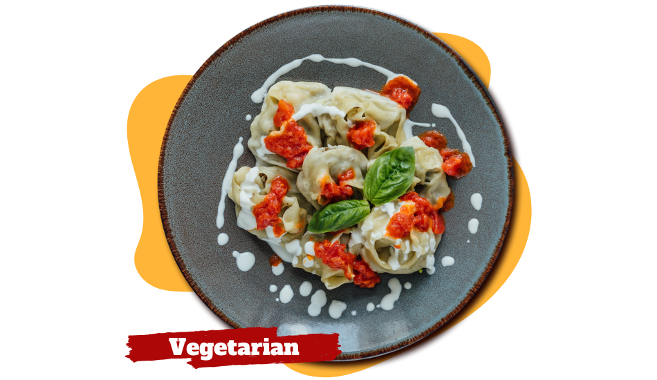 Homemade steamed dumplings with a hearty minced meat and onion filling. Served with tomato sauce and yoghurt.